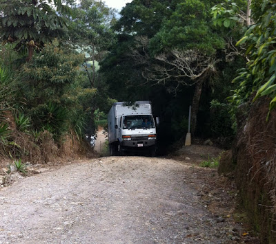 Currently, there is not a large amount of room for maneuvering in our driveway. Eventually, when the bodega, etc. is gone, we will have a driveway that you can enter at one end and leave through the other. Today the space available was a challenge!